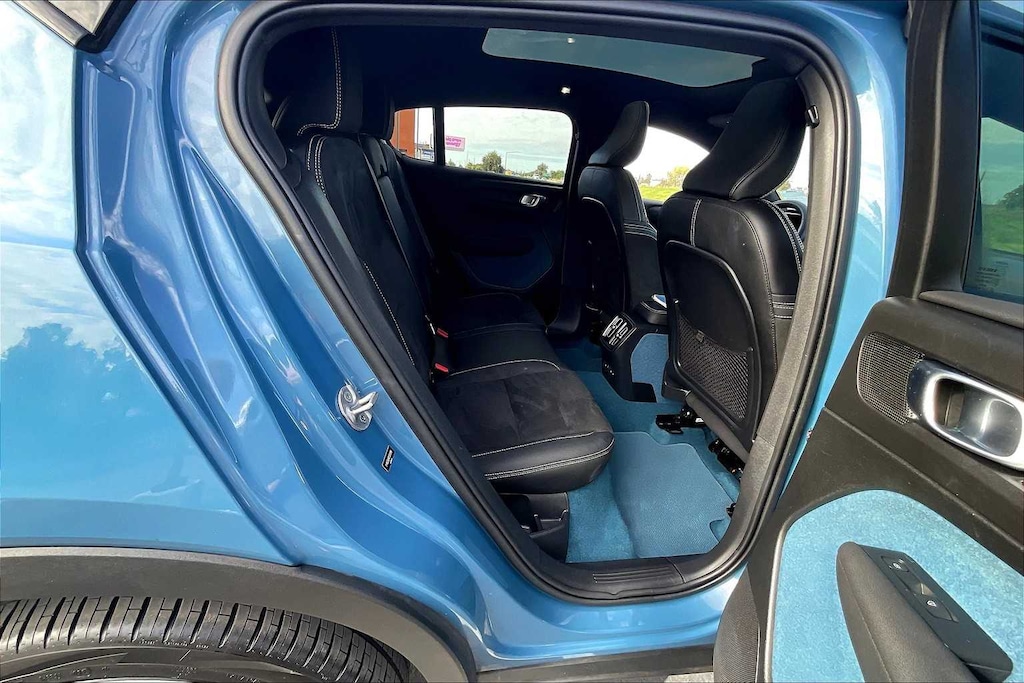 Blind Spot Monitor, Cross-Traffic Alert, Lane Keeping Assist, Child Safety Locks, Electronic Stability Control, Brake Assist, 4-Wheel ABS, Tire Pressure Monitoring System, 4-Wheel Disc Brakes Volvo Ultimate with Fjord Blue Metallic exterior and Charcoal/Fjord Blue interior features a Electric Motor with 402 HP at 13900 RPM*.
